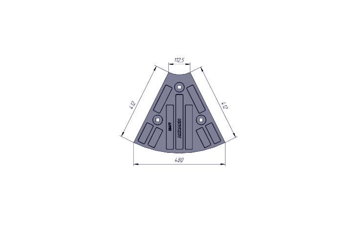 Торцевой сектор брони для защиты агрегатов асфальтобетонного завода марки Ammann. Броня производится из чугуна с высоким содержанием хрома, что позволяет избежать износа асфальтосмесителя из-за воздействия абразивных материалов в течение продолжительного времени.